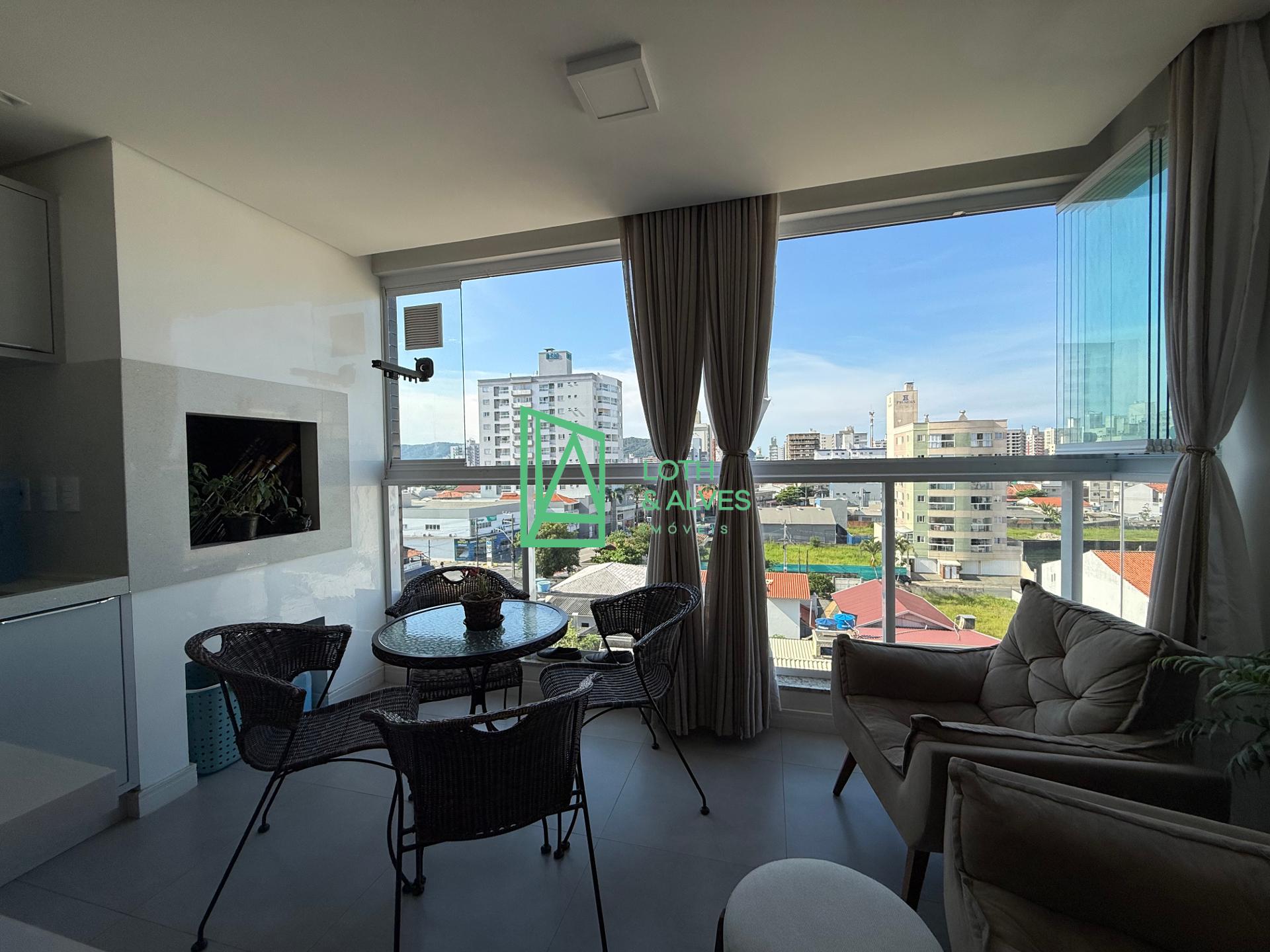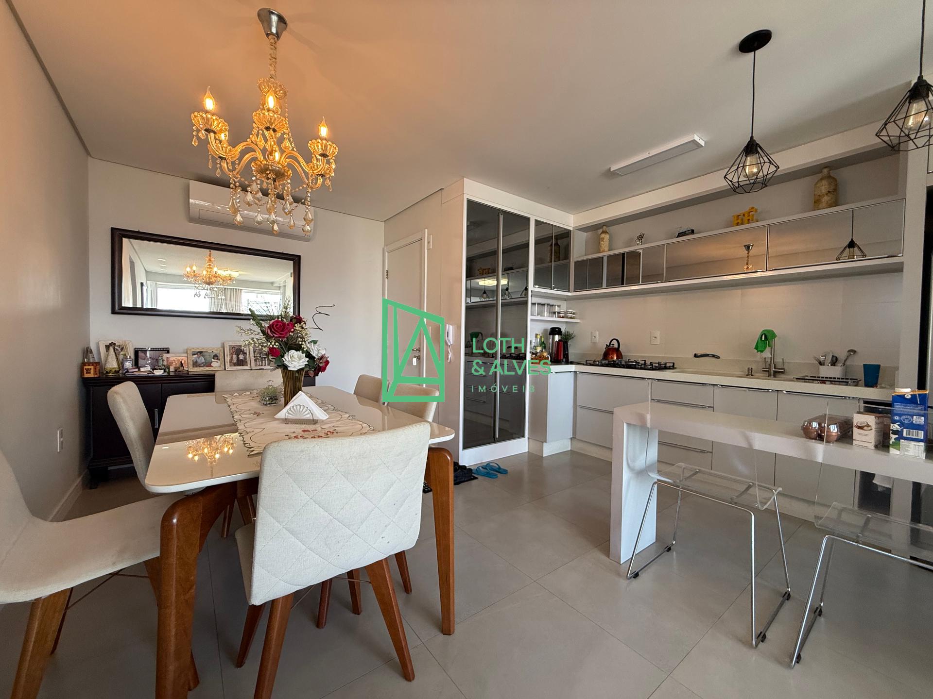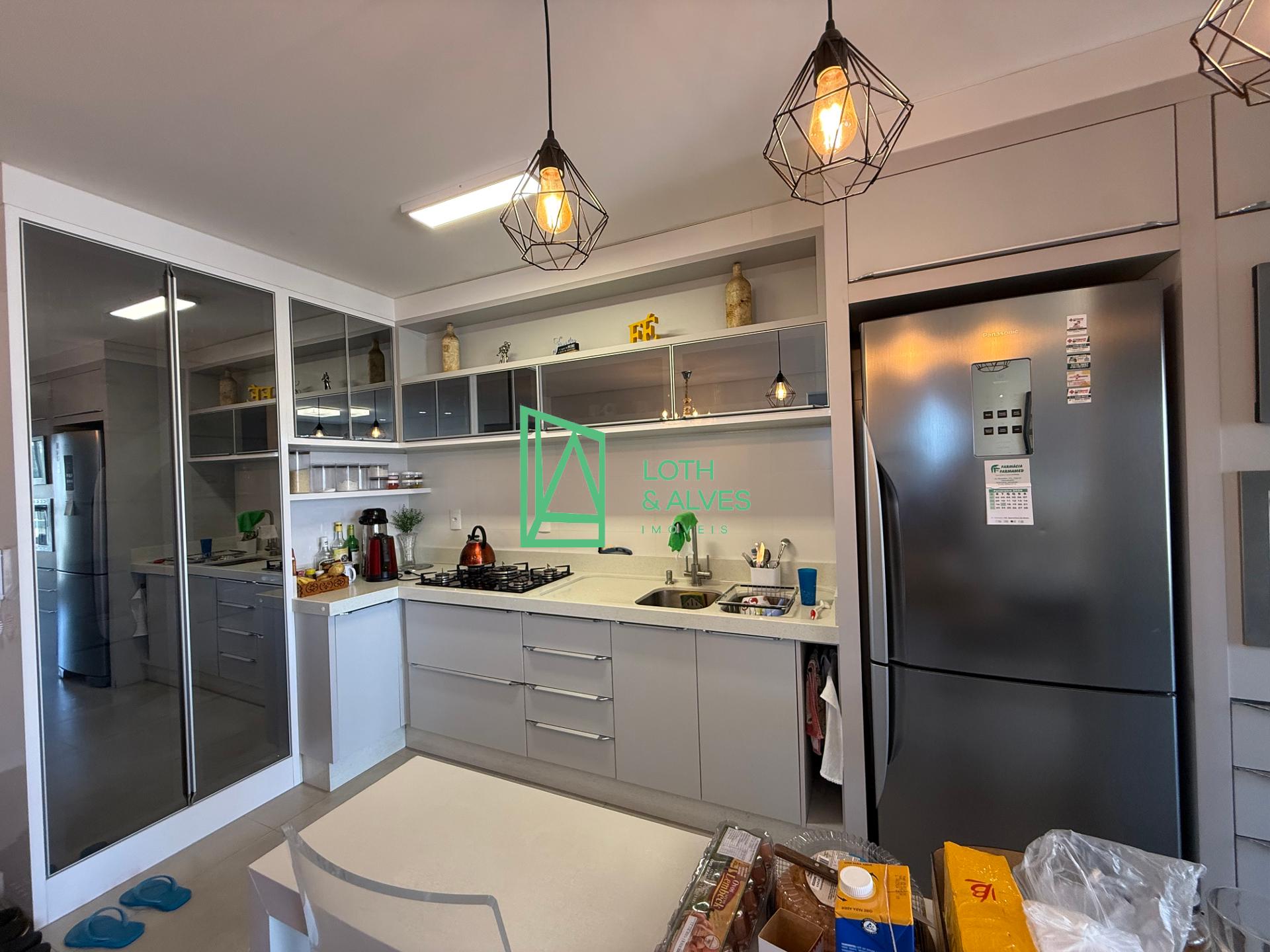 - Living integrado com sala de estar/jantar, cozinha e área de serviço