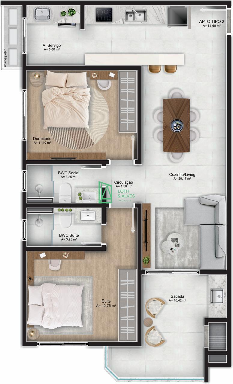 Apartamento à venda em Navegantes-SC, Praia do Gravatá, 400 metros do mar Possui 02 suites, lavabo, sacada com churrasqueira, living integrado, area de lazer rooftop com piscina, salão de festas, sala de jogos, brinquedoteca..