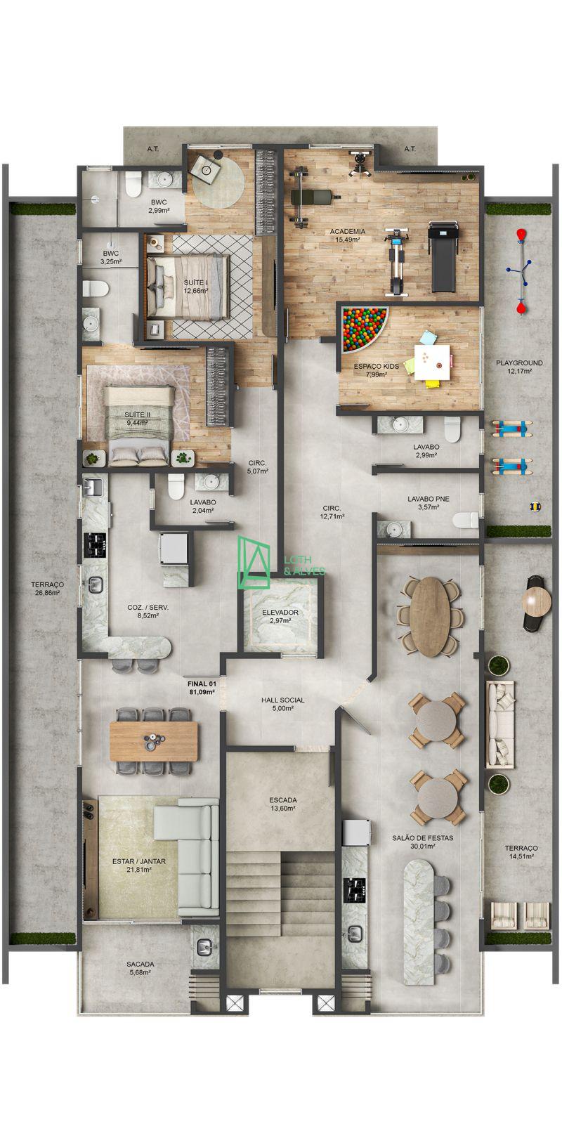Empreendimento possui salão de festas, academia e brinquedoteca
