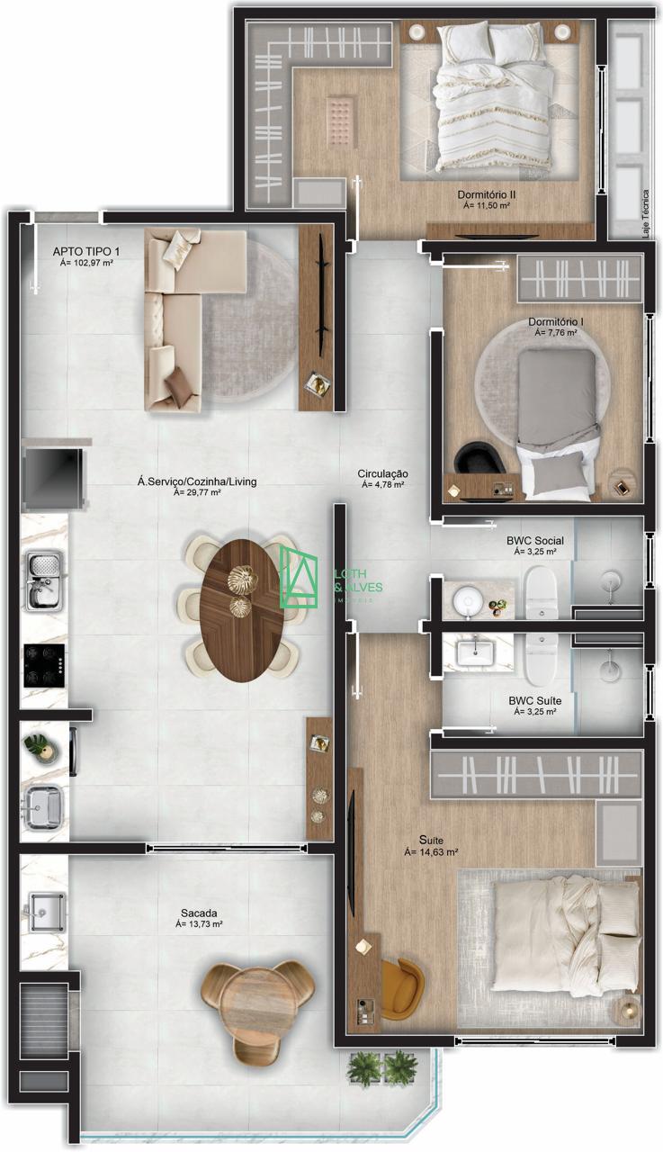102,97m² (m²) Área Útil