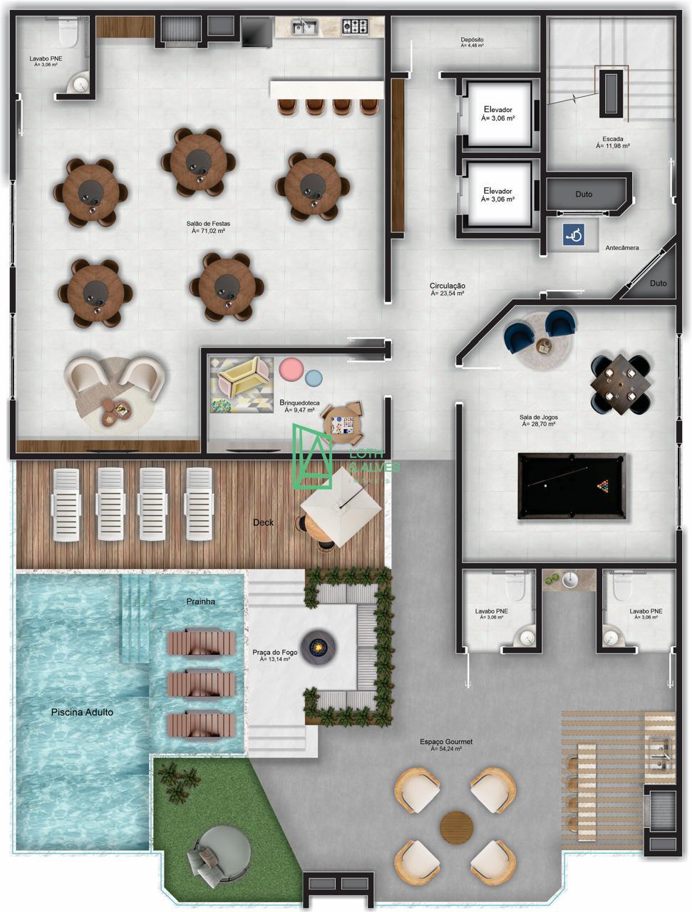 Possui 03 dormitórios, sendo 01 suite, sacada com churrasqueira, living integrado, 02 vaga de garagem, area de lazer rooftop com piscina, salão de festas, sala de jogos, brinquedoteca..