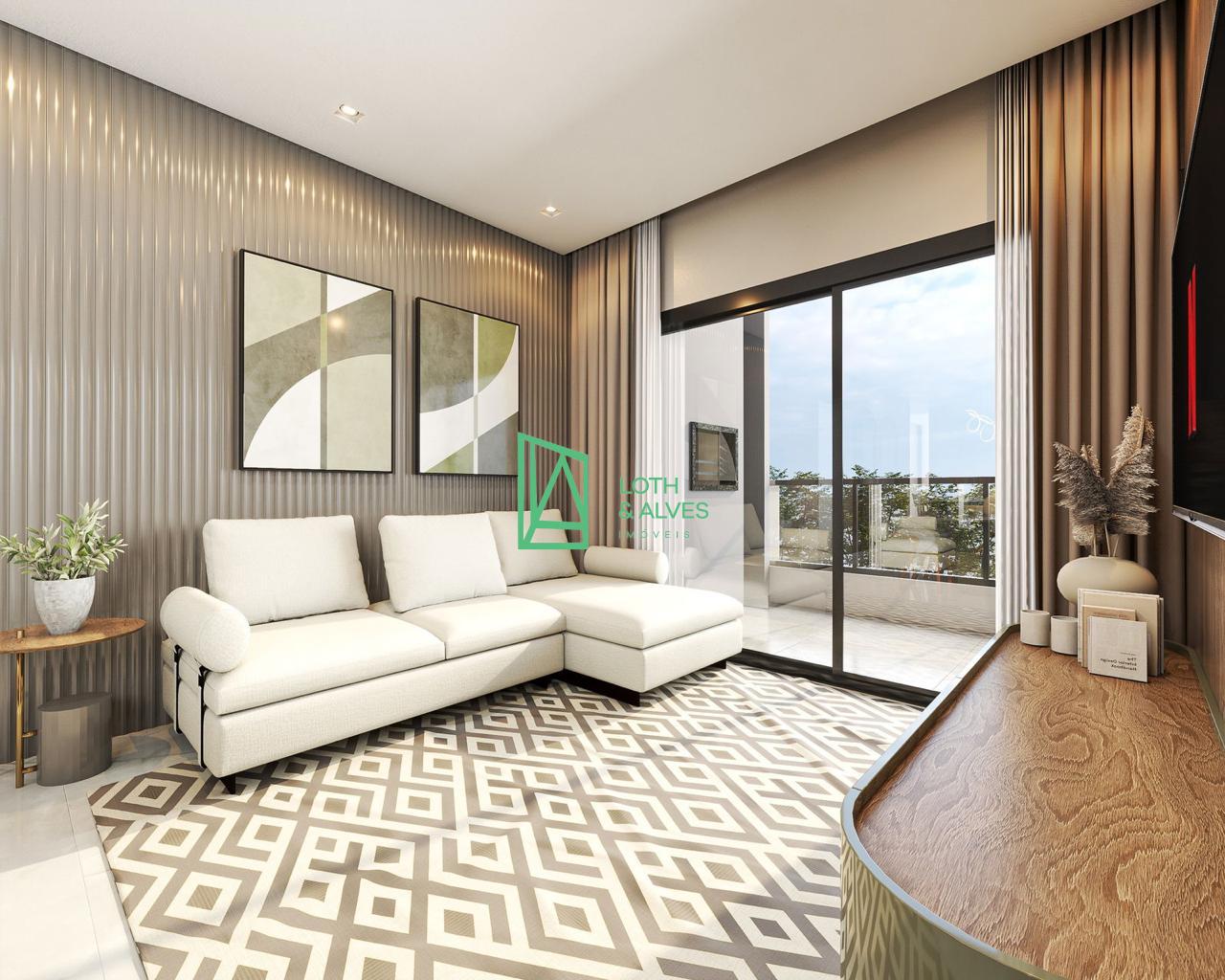 Possui 02 dormitórios, sendo 01 suite, sacada com churrasqueira, living integrado, cozinha e banheiro social