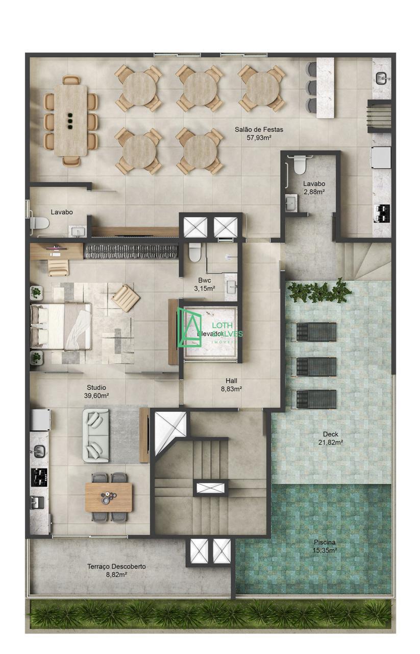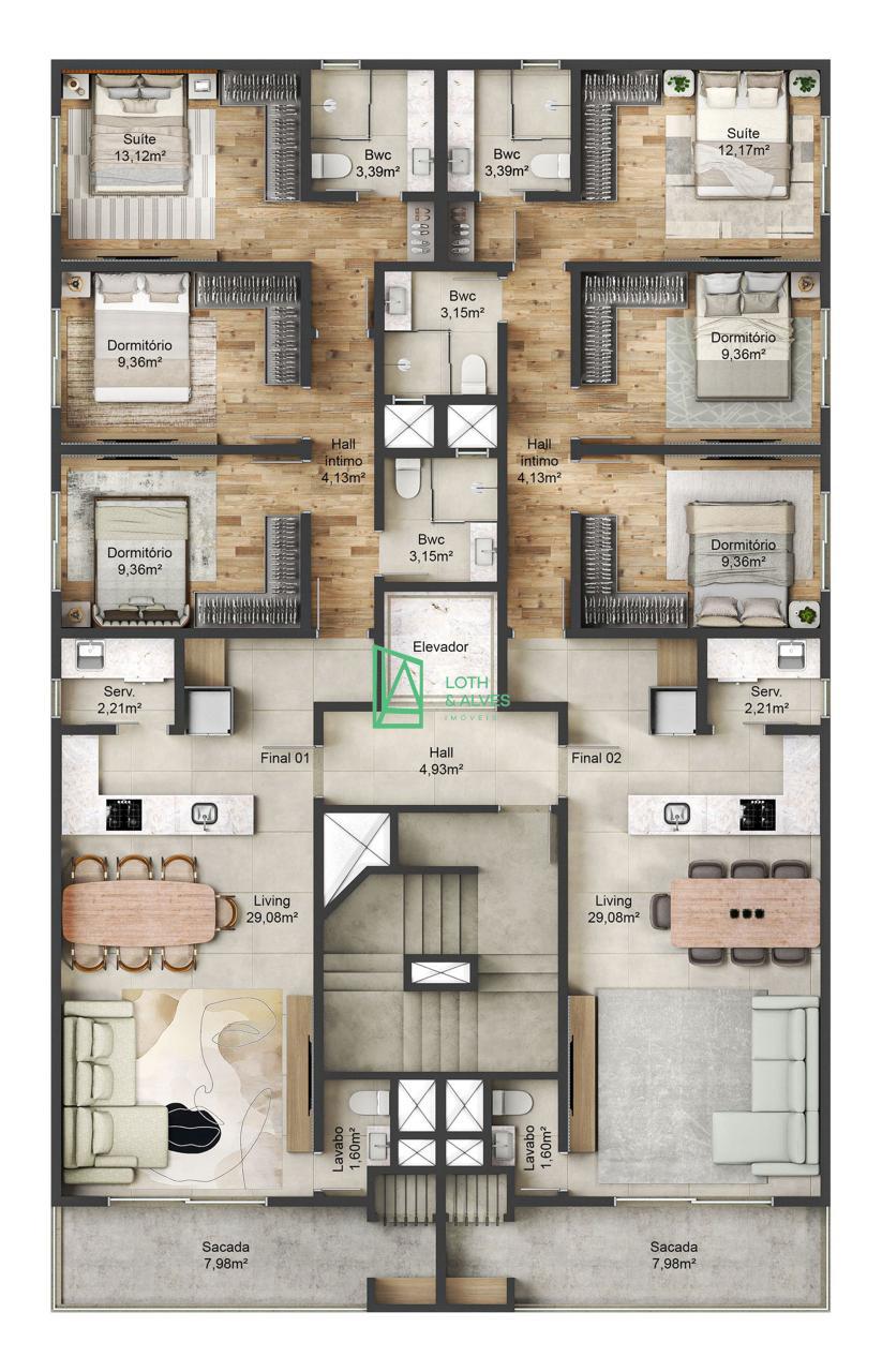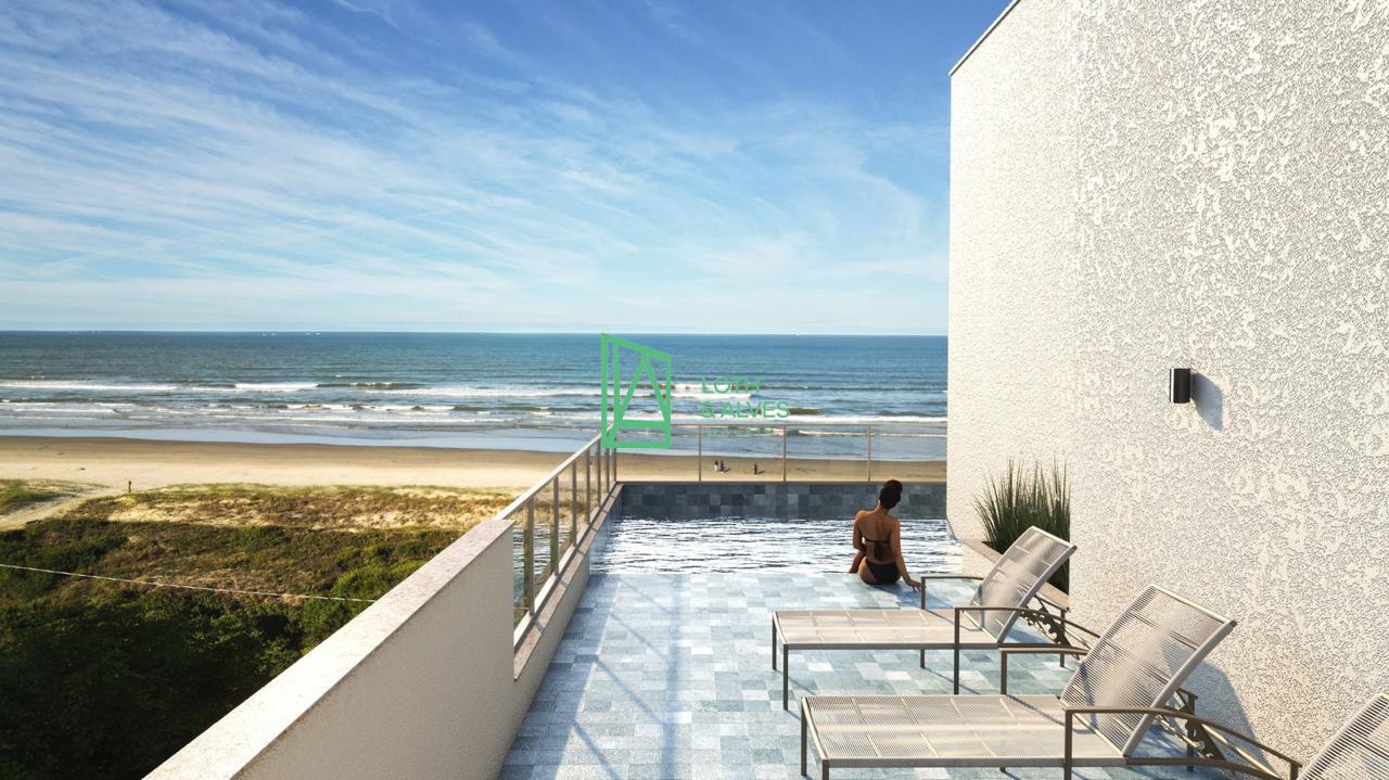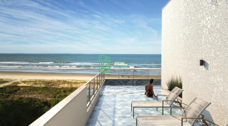 Apartamento frente mar, com 3 dormitórios, sendo 1 suíte, um banheiro social e 2 vagas de garagem.