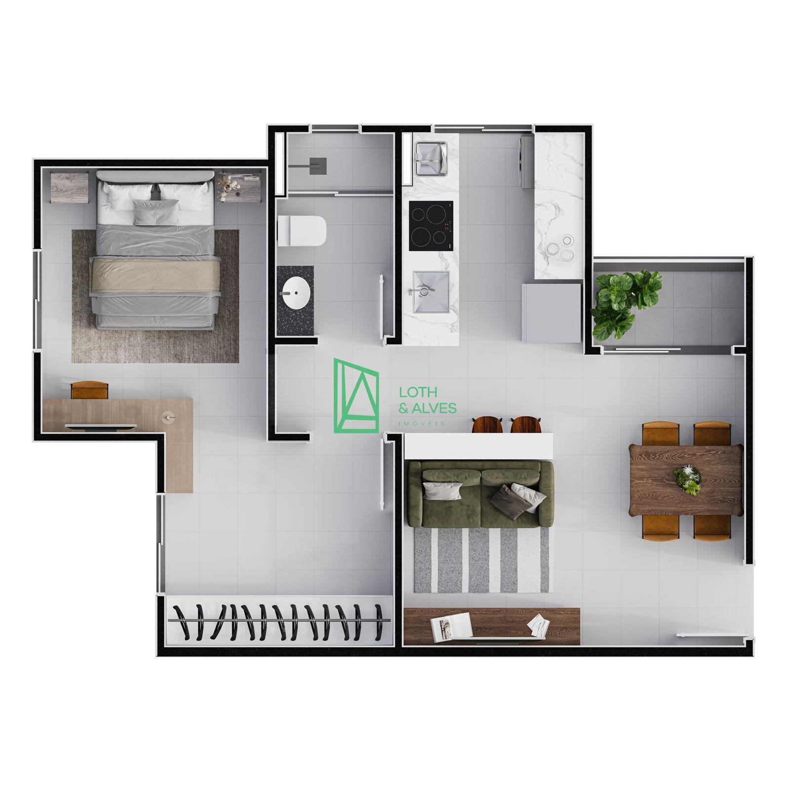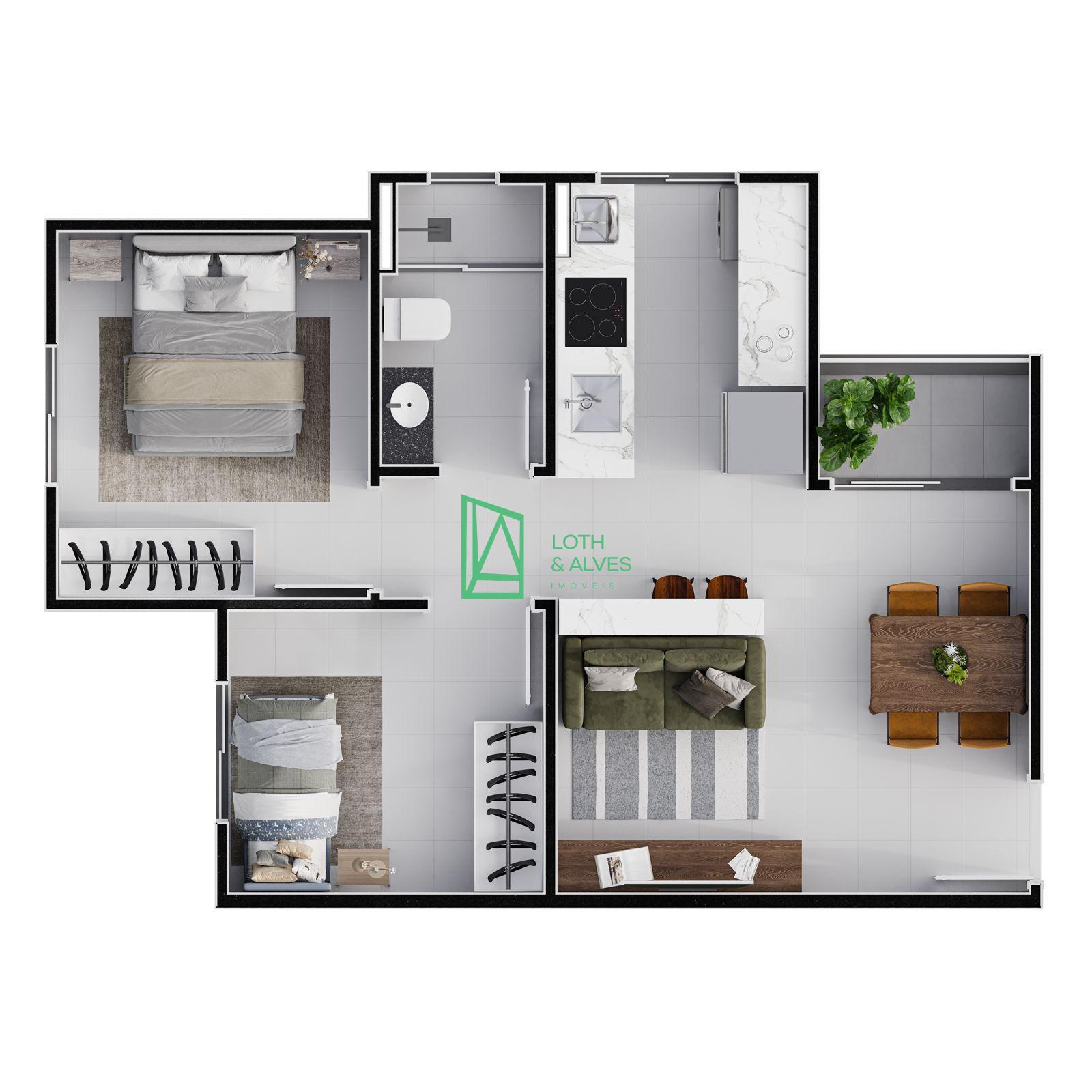 Apartamentos com um ou dois dormitórios conforme necessidade, sala, cozinha, banheiro social e uma vaga de estacionamento sem cobertura.