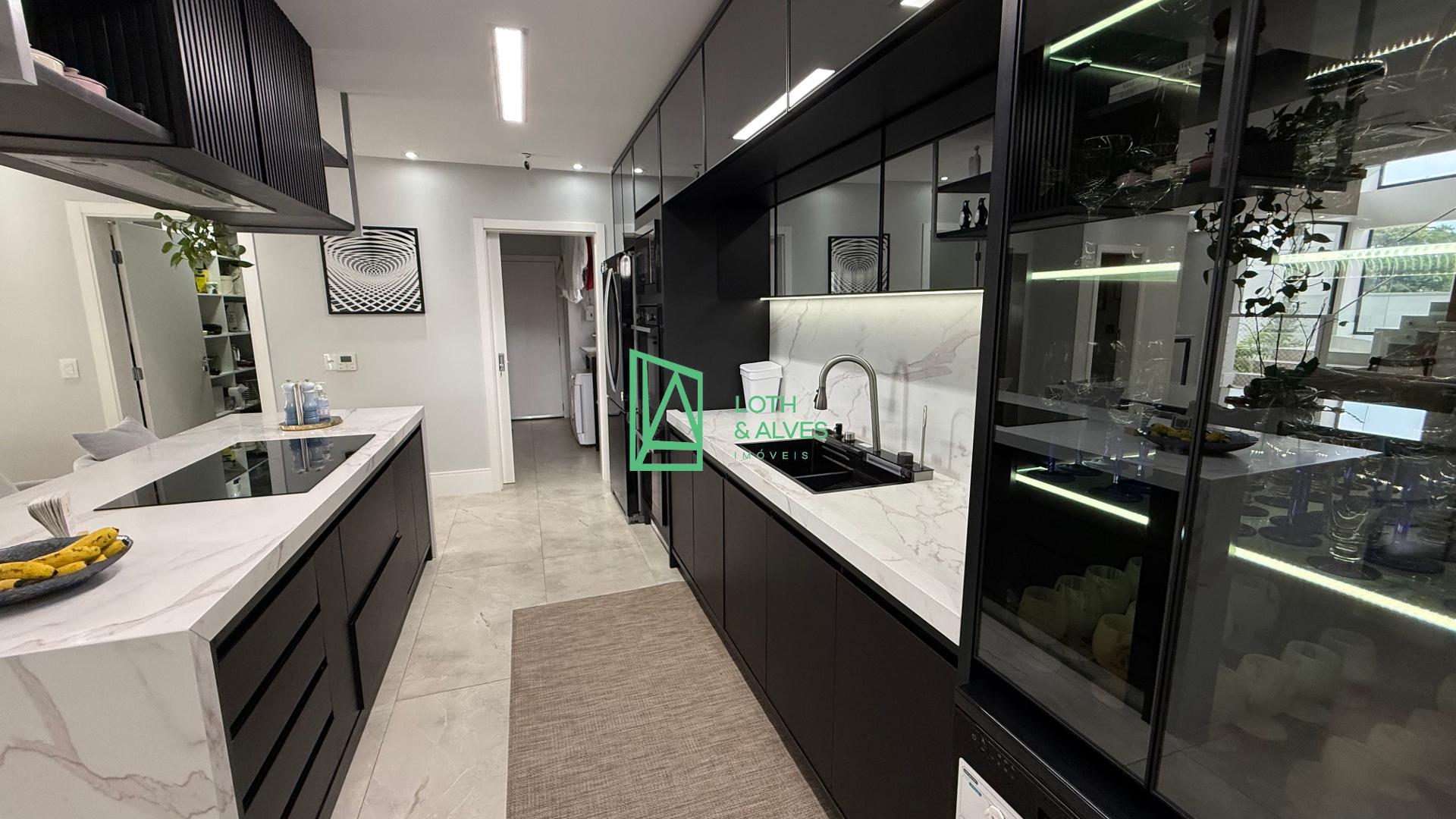 No pavimento térreo, os espaços sociais se destacam pela amplitude e elegância, com sala de estar, sala de jantar e cozinha integradas, criando um ambiente acolhedor e funcional para o dia a dia e para receber convidados. Neste nível também estão a área gourmet com churrasqueira integrada à piscina aquecida, uma suíte térrea, adega, despensa, lavanderia e banheiro social, garantindo praticidade em todos os detalhes.